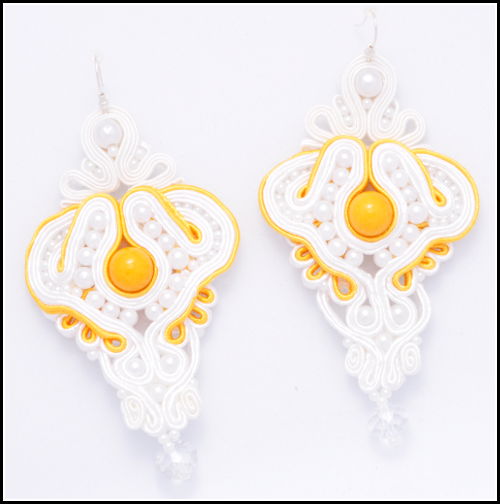 Kolczyki z drugiej strony zostały wyszyte soutache oraz małymi perełkami - w tańcu kolczyki wielokrotnie się przekręcają a w ten sposób wyglądają efektowniej.